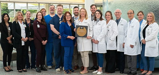 Pictured above (left to right): Dr. Shahina Banthanavasi, CMO; Cheryl Watkins, VP Patient Care Services & Nursing Operations; Roz Parsons, Director of Perianesthesia Services & Endoscopy; Stephanie Lilje, Directory of Perioperative Services; Marlene Van Orden, Manager of PeriAnesthesia; Calvin Ledbetter, Nurse Manager General Surgery; Josh Aldrich, Robotics RN Coordinator; Cindy Vanderhoff, Senior Manager & Inspector, SRC; John Wagner, VP Perioperative, Imaging & Ancillary Services; Dr. Greta Bernier, Colorectal Surgeon, Medical Director Robotic Surgery; Dr. Eric Schmit, Ob/Gyn Surgeon; Dr. Olga Valieva, Ob/Gyn Surgeon; Dr. Jennifer Burzawa, Gynecologic Oncologist; Dr. Ron Swensen, Gynecologic Oncologist; Dr. Wayne Lau, General Surgeon; Dr. Trisha Unger, General Surgeon; Dr. Heather Wheeler, General Surgeon