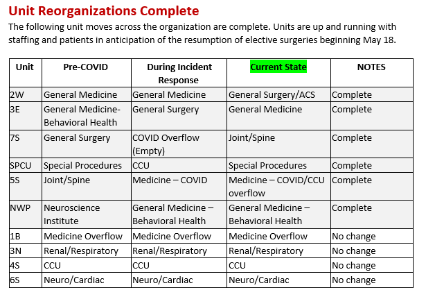 In summary and with this updated guidance in mind, the time has come to review all the delayed surgeries, procedures and diagnostic tests again. We have the ability to perform procedures safely for both our patients and staff. Please schedule any patient procedures which may include imaging, lab, interventional procedures and surgeries that in your clinical judgment you believe would cause your patients harm if further delayed. It’s important to note that proclamation and it’s requirements are still in effect until May 18.